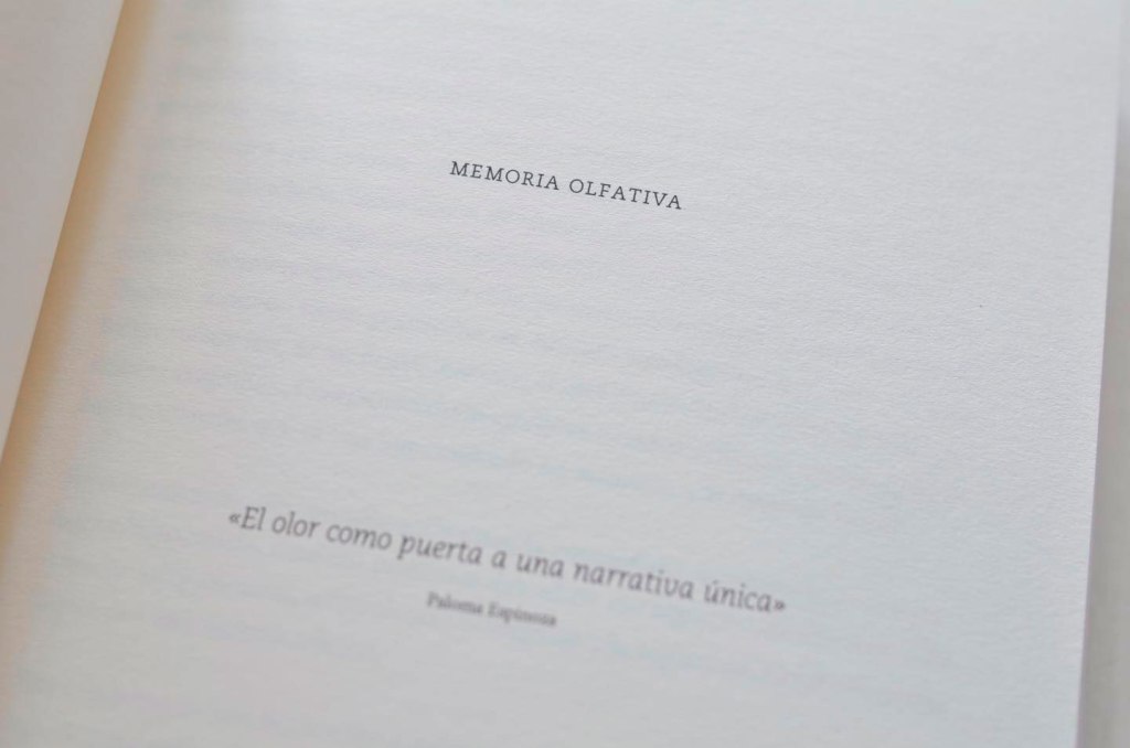 2020: Memoria Olfativa, material editorial. Una invitación a indagar en la intimidad de la memoria, un espacio para reencontrarse con rincones emotivos y significativos propios, que han quedado impresos a través del olfato. Este cuaderno es una herramienta para enriquecer el lenguaje, un viaje para recordar y descubrir tu historia volátil, explorar la huella de tus sentidos, creando una ruta que nos señale tu dimensión aromática.