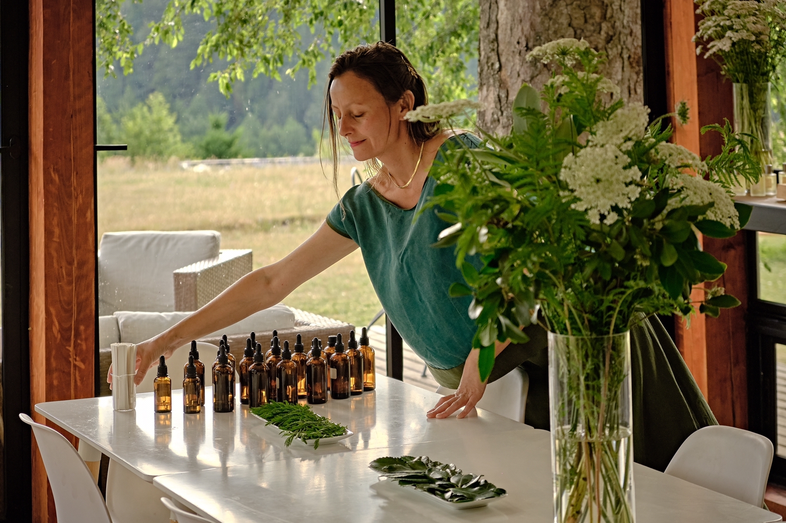 Investigación aromática de la flora local, nativa e introducida de la precordillera del sur de Chile. Exploración que contó con el montaje de un laboratorio para investigación y extracción de fragancias. Este proyecto se desarrolló junto a recolectores locales, considerando la propagación y cultivo de las plantas y la sostenibilidad del material extraído para el desarrollo de instalaciones y piezas de arte.