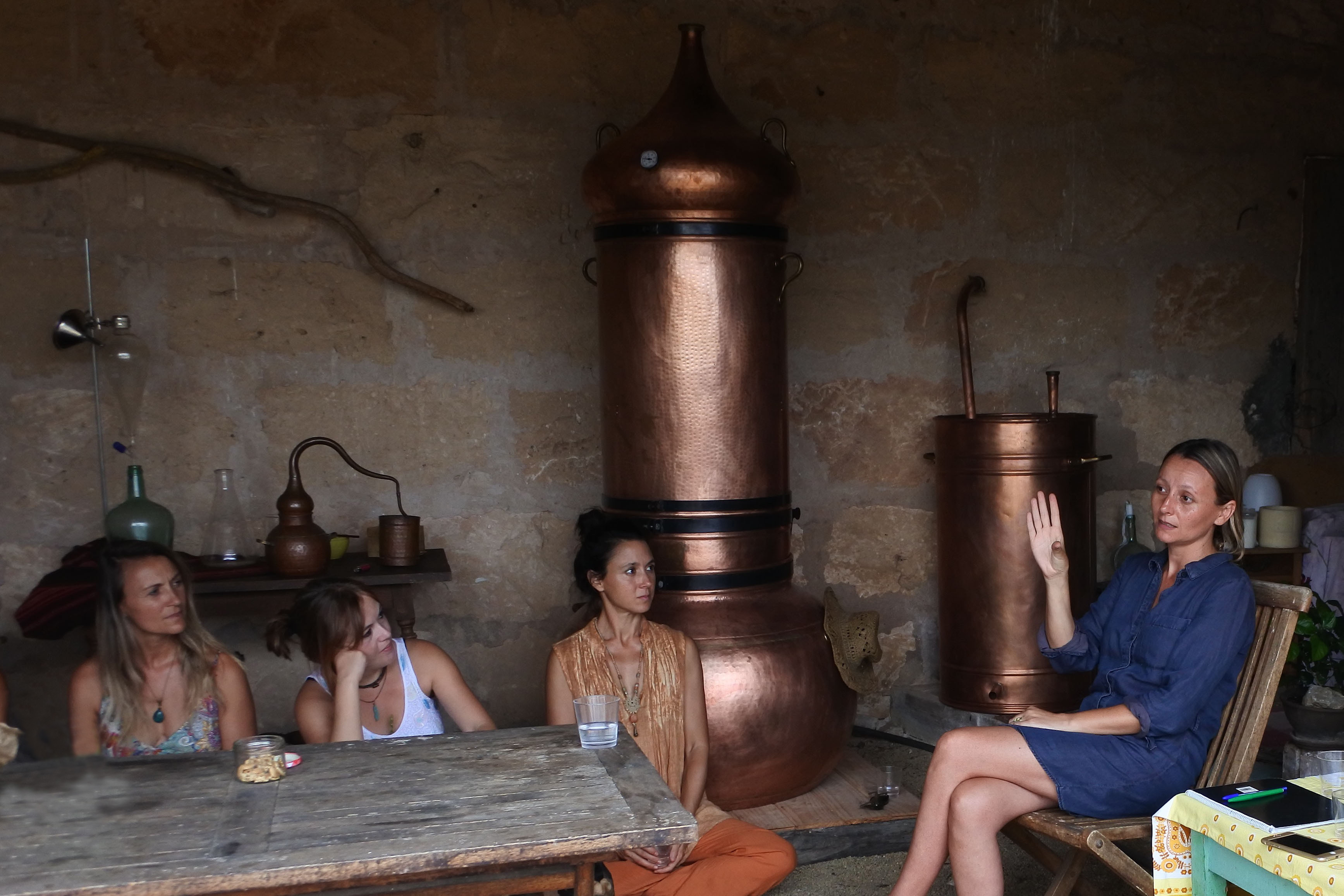 Dedico cada taller a una planta particular, profundizando en su historia, cultivo, cosecha y características específicas de cada especie para su destilación, compartiendo también posibilidades de su uso medicinal y cosmético.